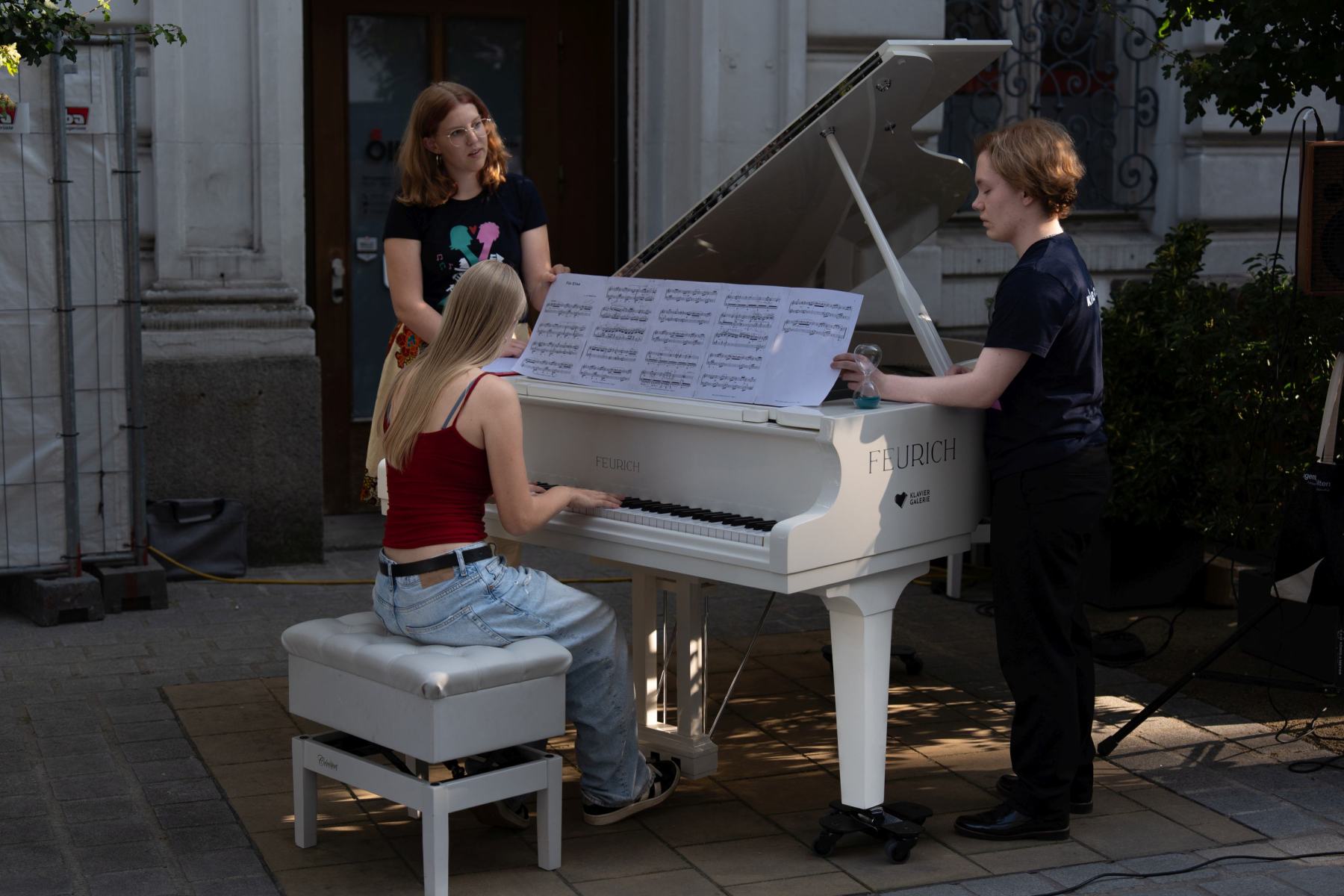 Außerhalb der bespielten Zeit steht der Flügel Passant*innen zur Verfügung, um sich musikalisch begegnen und miteinander musizieren zu können. Der Verein Open Piano for Refugees sammelt Spenden für Kinder, die sich einen Musikschulunterricht nicht leisten können. Bitte unterstützen Sie dieses tolle Projekt!